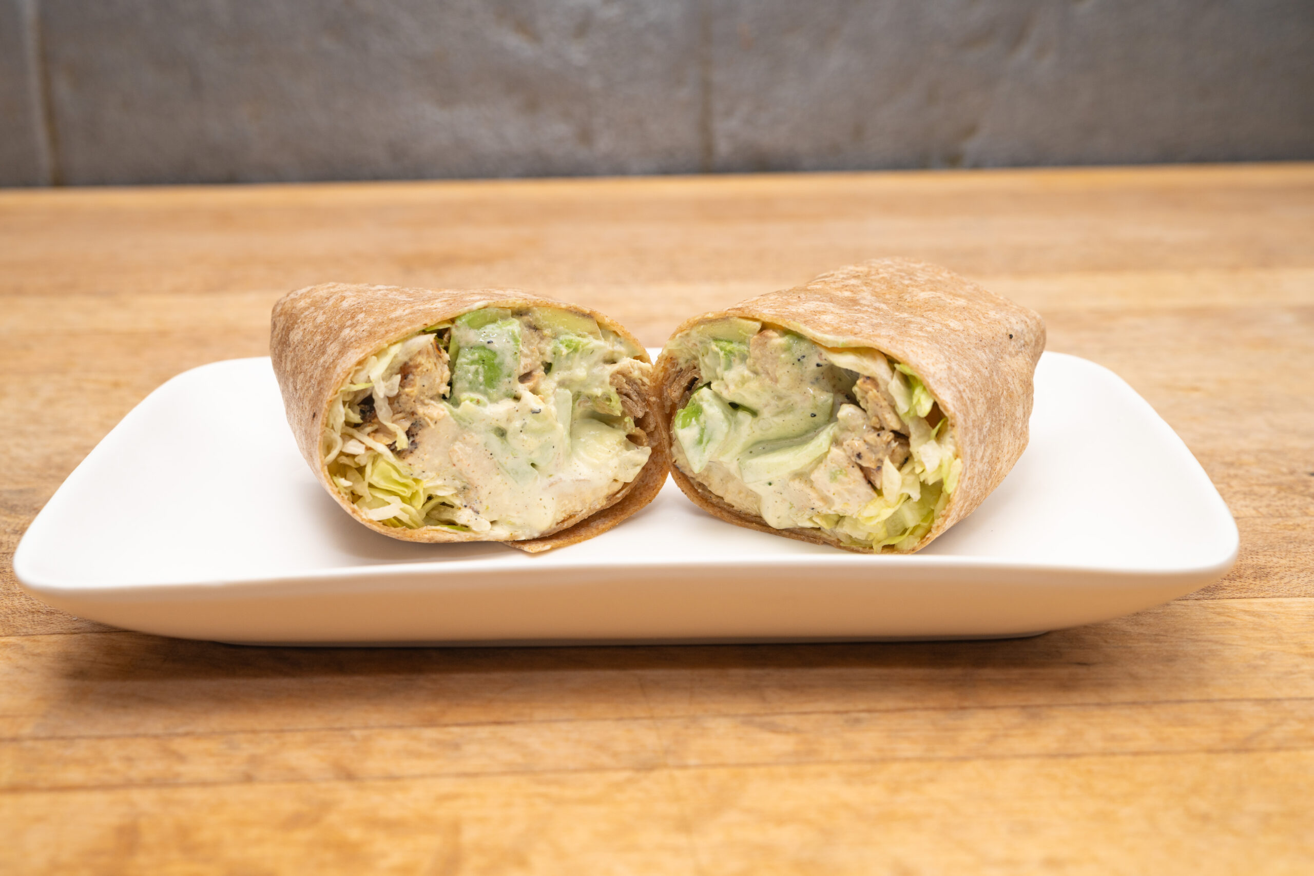New Lunch Wrap! Marinated Grilled Chicken Breast, Avocado, Our Lemon Dill Aioli, Cucumber and Lettuce on a Whole Wheat Wrap! Includes a side pickle and 1/4lb cup of your choice of one salad: Coleslaw, Macaroni or Potato Salad!
