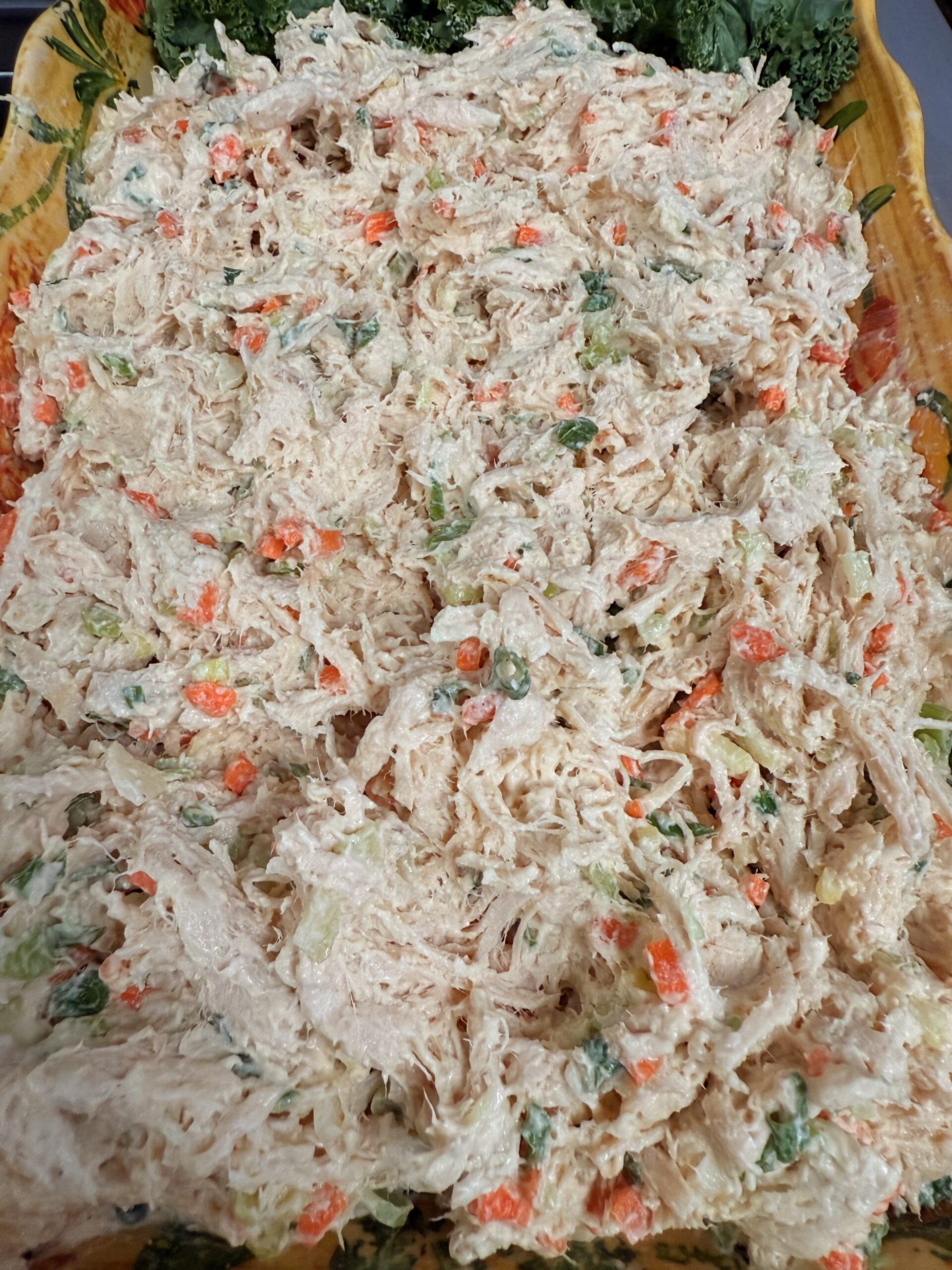 Chicken Salad with Honey Mustard, vegetables, raisins, almonds, walnuts. **This salad contains nuts and raisins Includes pickle and 1/4 lb. coleslaw, macaroni or potato salad.